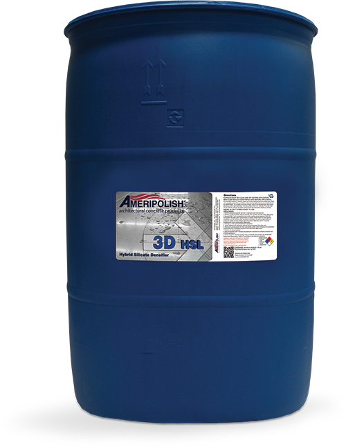 3D Hybid Silicate Densifier is three densifiers in one with lower solids to penetrate even the most difficult, tight cap. It improves surface performance and resists the harmful effects of traffic wear and weathering. By having three different sized molecule silicates this product fully penetrates varying densities of concrete regardless of region or hardness. This improves the abrasion resistance for new or aged concrete. 3D HSL is ideal for use for exposed and polished concrete, as well as integrally colored cements.