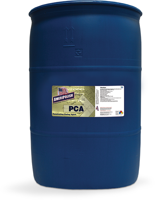 Ameripolish PCA is a penetrating curing agent that chemically hardens and dust-proofs concrete for improved abrasion resistance without forming a coating. PCA is recommended on newly placed concrete to add initial water and stain repellency while retaining slab moisture for improved curing. PCA requires no UV light for dissipation and can be used with integrally colored concrete.