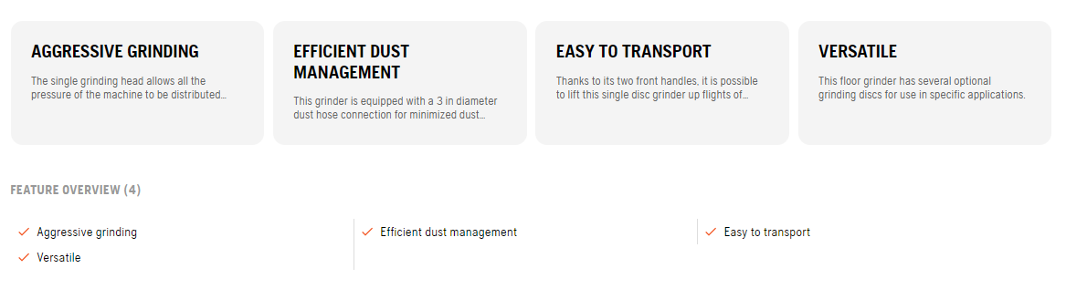 BG 250 is a single disc concrete grinder designed for heavy duty surface preparation applications. BG 250 is very easy and comfortable to use with low vibrations. Thanks to its two front handles, it is possible to lift the machine up a flight of stairs. BG 250 has an asymmetric dust exhaust with a built-in deflector for improved/optimised dust extraction. In addition, it is equipped with a special drive system for optimum load distribution. Available in Electric and Petrol Gas.