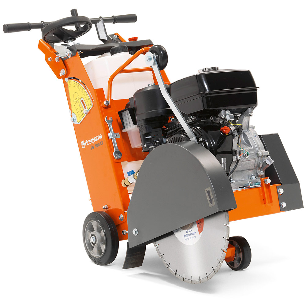 Our robust FS 400 LV is a convenient all-round petrol push floor saw. The adjustable handle ensures an ergonomic working position. Perfect weight distribution gives excellent stability while sawing. Ideal for small road repair jobs in concrete or asphalt, up to 189 mm cutting depth.