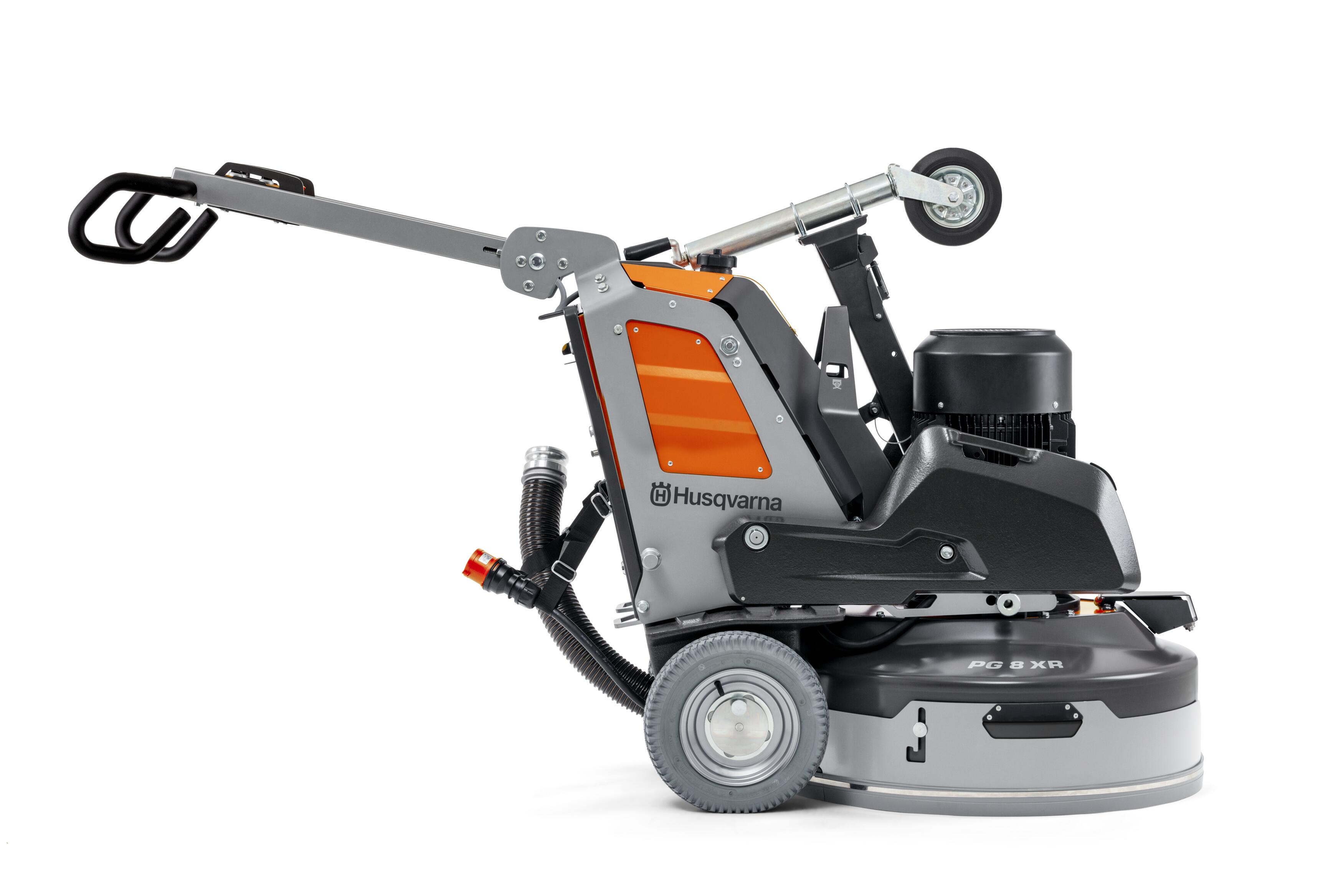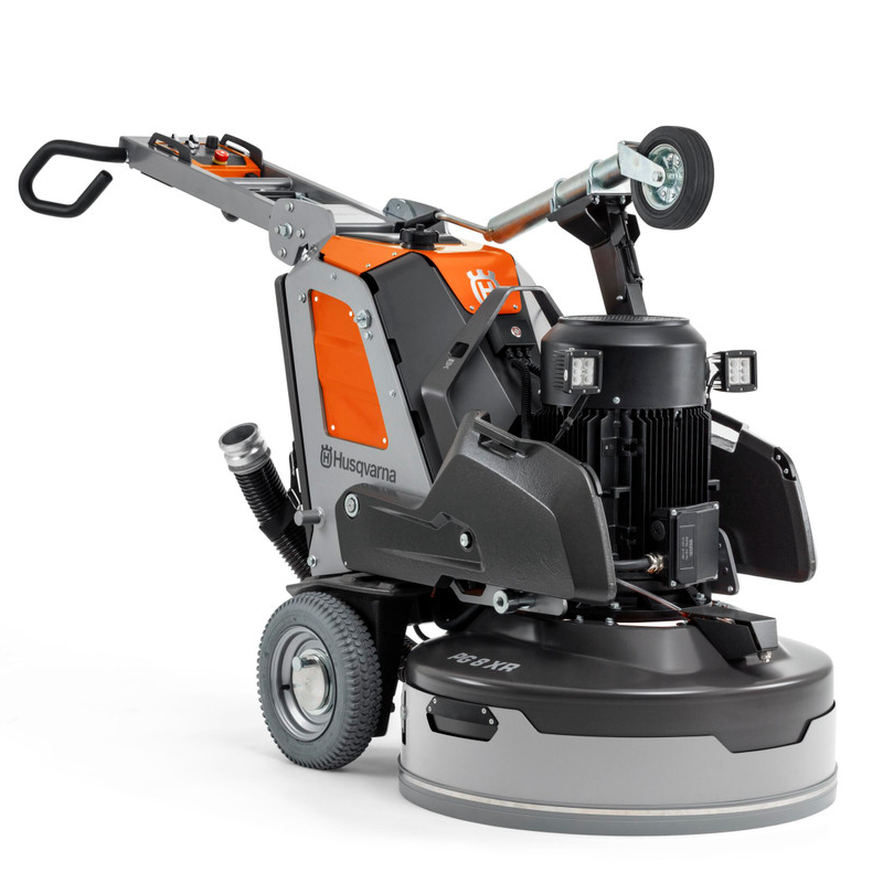 The PG 8 XR is a powerful remote-controlled planetary floor grinder with four grinding discs. The four-disc technology, which involves two pairs of grinding discs rotating in opposite directions, makes the PG 8 XR both well balanced and highly efficient. The machine is an excellent choice for all applications, from preparing to grinding and polishing concrete and stone floors. The mist cooler system cools the diamond tools, significantly increasing the removal rate and reducing the risk of glazing the tools (compared with not using the mist cooler system). If needed, the integrated adjustable weights can be used to increase grinding pressure and productivity.