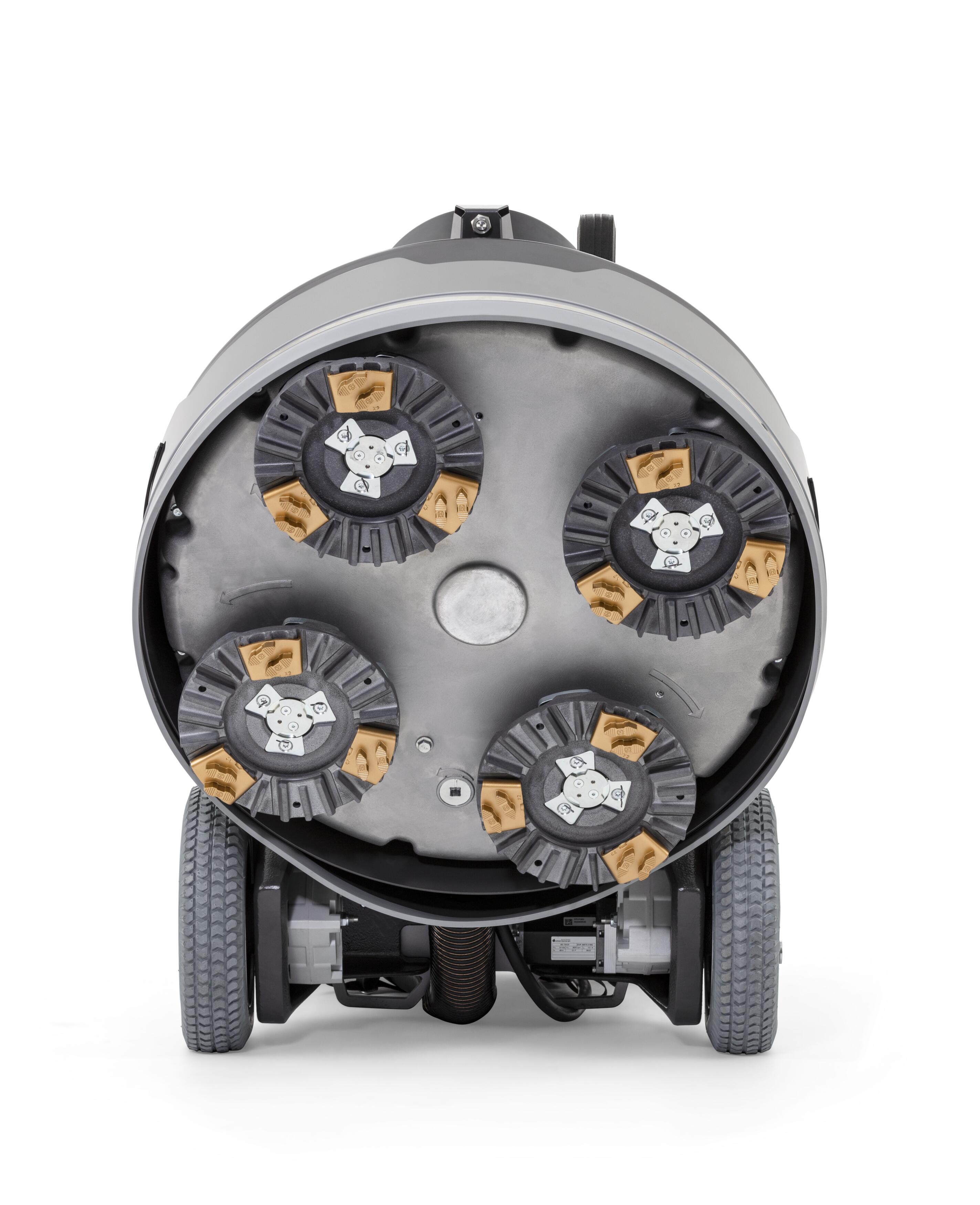 - Higher removal rate with mist cooler system: The mist cooler system sprays a fine mist on the floor, which cools the diamond tools. This makes it possible to achieve a better cut, reduces the risk of glazing the tools, and significantly increases productivity.