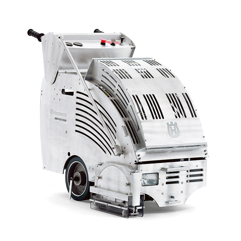 The Husqvarna Soff-Cut 2500 self-propelled dry cutting gas saw has a low noise enclosed design and is ideal for medium to heavy-duty commercial, industrial and paving applications. The 2500 is designed for versatility, ease of use and high production capabilities. Three blade widths can be used, allowing for different joint widths and crack control simultaneously. Features include a 13 hp engine, halogen lighting system, electric remote key start, and a cyclone air cleaner to increase engine longevity.