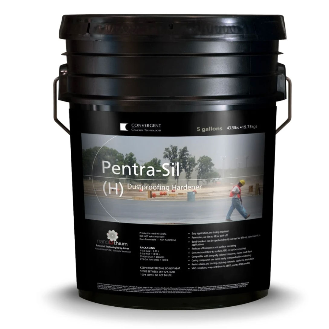 Pentra-Sil® (H) provides maximum hardening for concrete slabs and tilt-up construction. This lithium-based product reduces dusting and makes the surface more water, stain and abrasion resistant while increasing surface sheen over time. Pentra-Sil® (H) is applied in one application, will not peel, and no rinsing is required. This solution is VOC compliant and easy to apply.