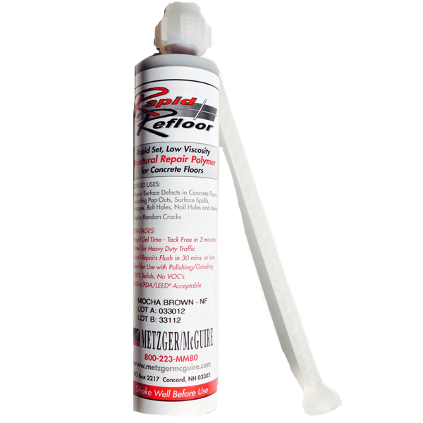 Rapid Refloor is a 100% solids, two component, low viscosity structural polyurea/polyurethane hybrid intended for use in repairing cracks and small surface defects such as bolt holes and pop-outs in industrial, retail or commercial concrete floors. Rapid Refloor’s rapid set chemistry allows for return to service in 30 minutes or less.