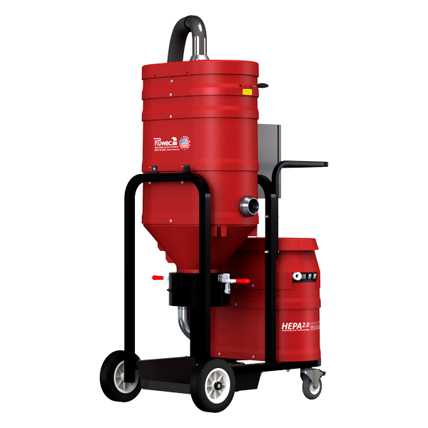 The R470 “Patriot Pro” is Ruwac’s four motor, 470 CFM single phase industrial vacuum system. With its mobile design and 220v power, the Patriot Pro is perfect for large platform Surface Preparation concrete applications. Engineered for durability, the Patriot Pro will be on your job sites for a VERY long time. The Patriot Pro also has a portable Direct Bagger design!