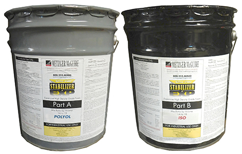 Spal-Pro Stabilizer EXP is a 100% solids, two component, high-density hydrophobic polyurethane expanding foam for use in underslab stabilization of deflecting/rocking concrete floor panels. Spal-Pro Stabilizer EXP allows for return to service in 60 minutes or less.