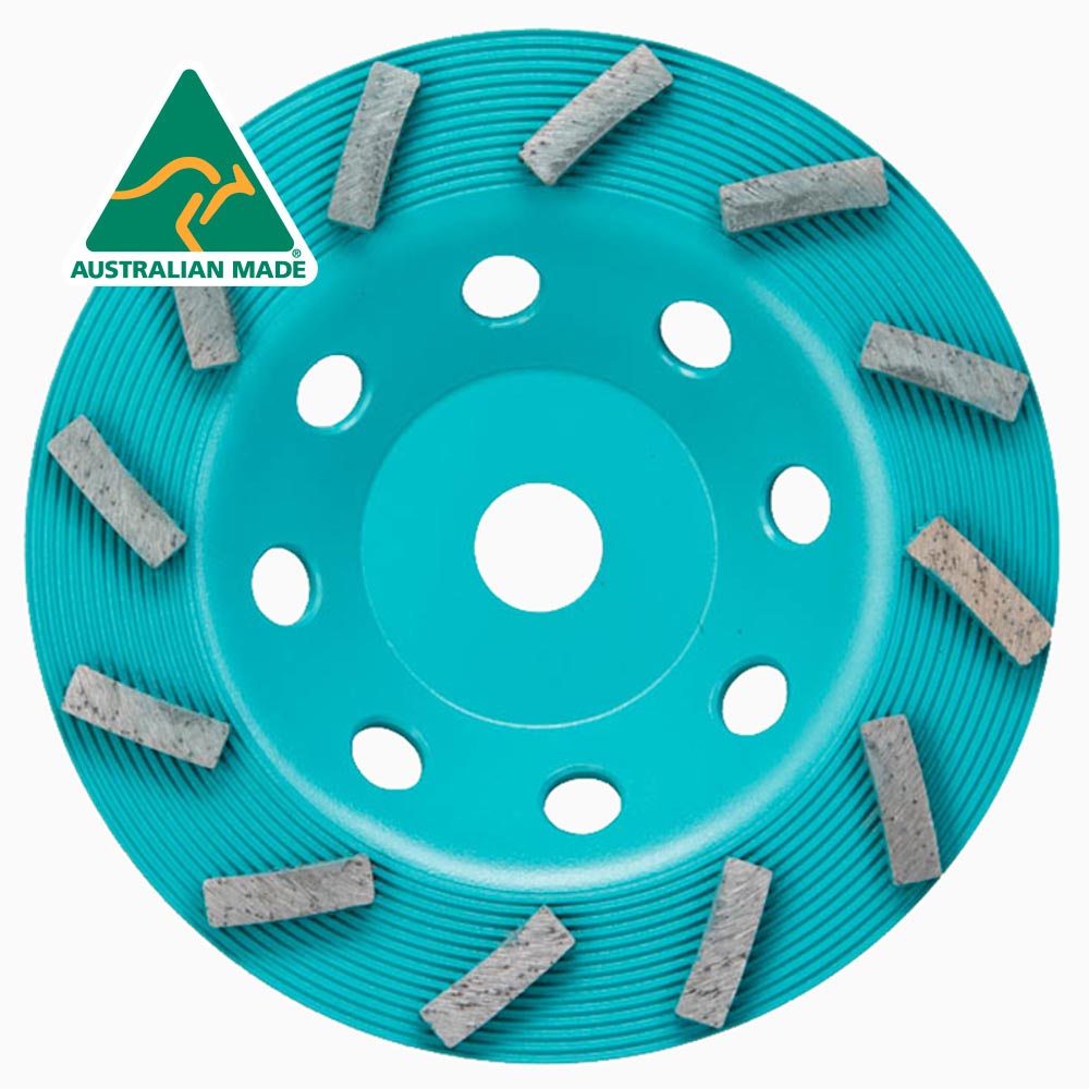 Syntec manufactures a wide variety of diamond cup wheels to assist in all applications. These applications range from concrete trip hazard removal, general concrete prep, coating / glue removal and concrete polishing.