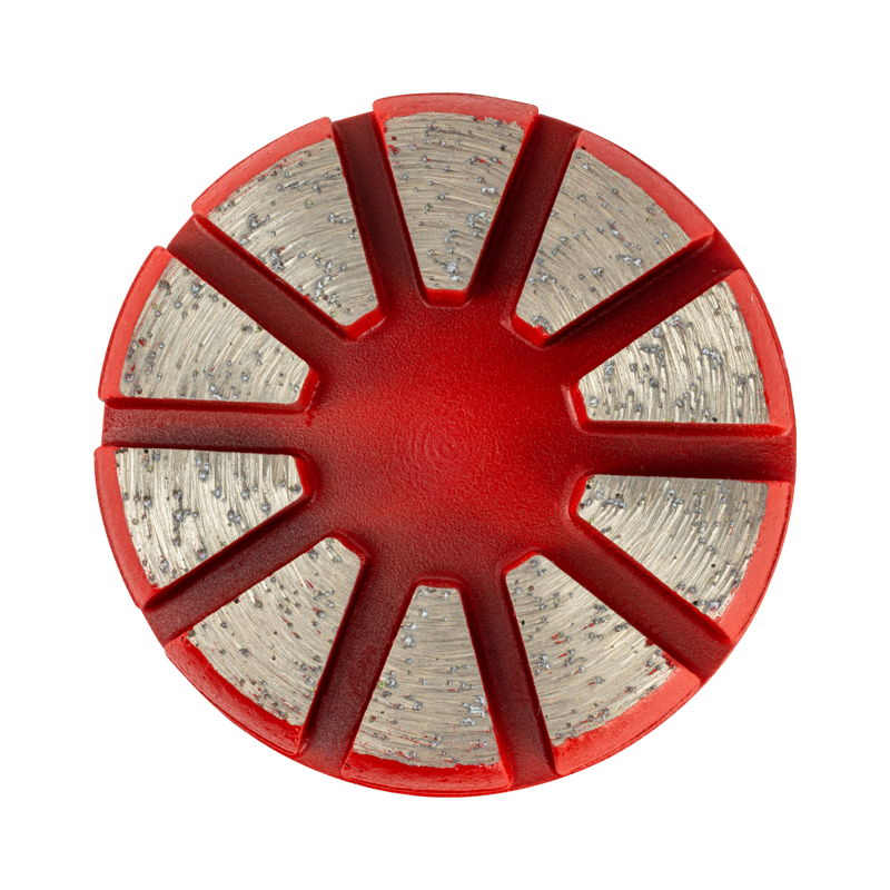 The Ten Segment floor grinding disc has ten robust metal-bond segments designed for maximum tool longevity. The radial-edged segments easily ride over inconsistencies in the floor. Additionally, the segments are designed to leave a subtle and consistent scratch pattern to properly prepare the concrete floor for the polishing steps.
