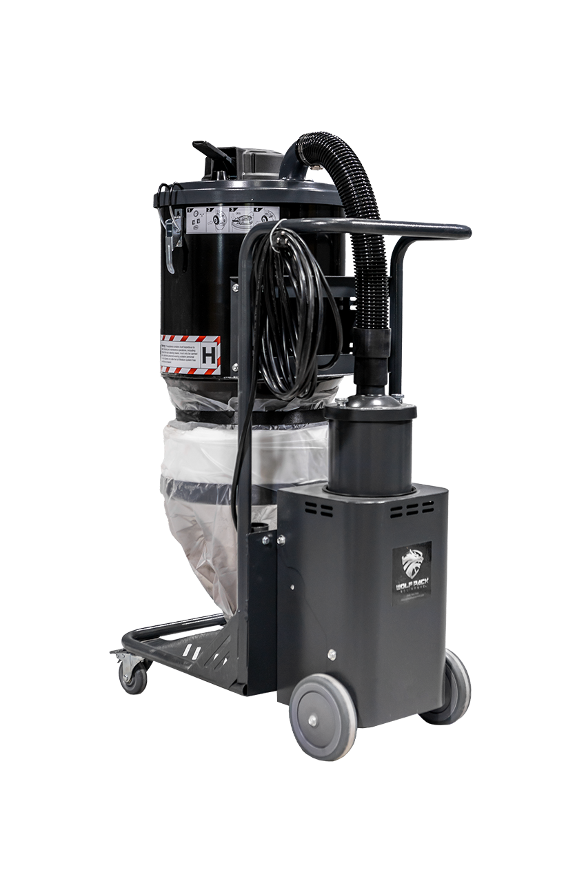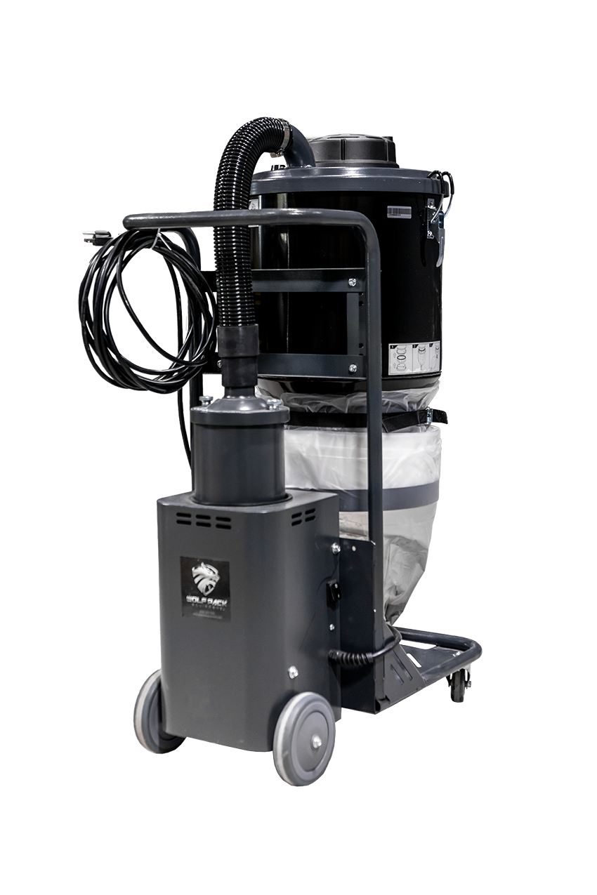 The WOLF VAC 1 is equipped with a conical pre-filter and one H13 HEPA filter. The main filter with 1.7m² filter surface, each of the HEPA filter is independently tested and certified. This Vac 1 can separate the fine dust with efficiency 99.99% ensuring your work space is a clean and safe environment. The Vac 1 is recommended for small grinders and hand held power tools.