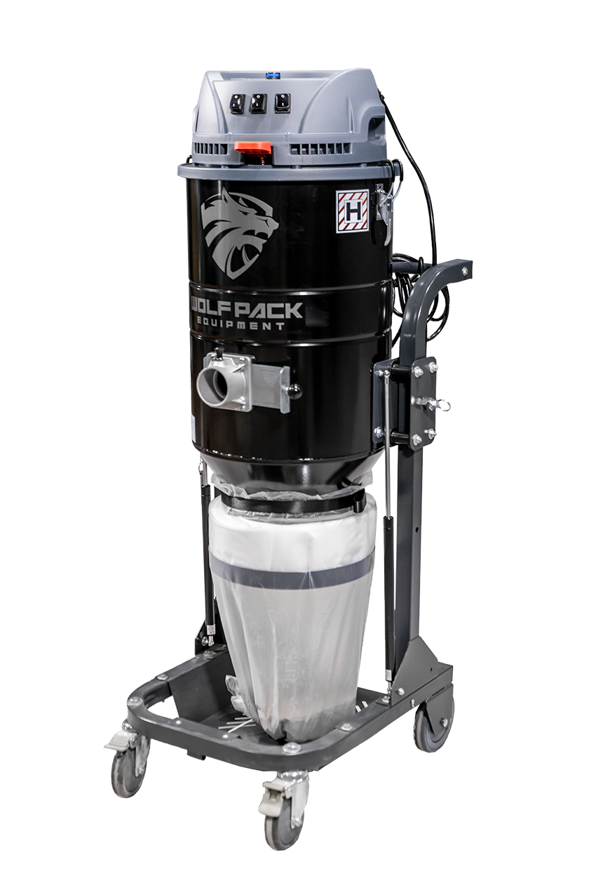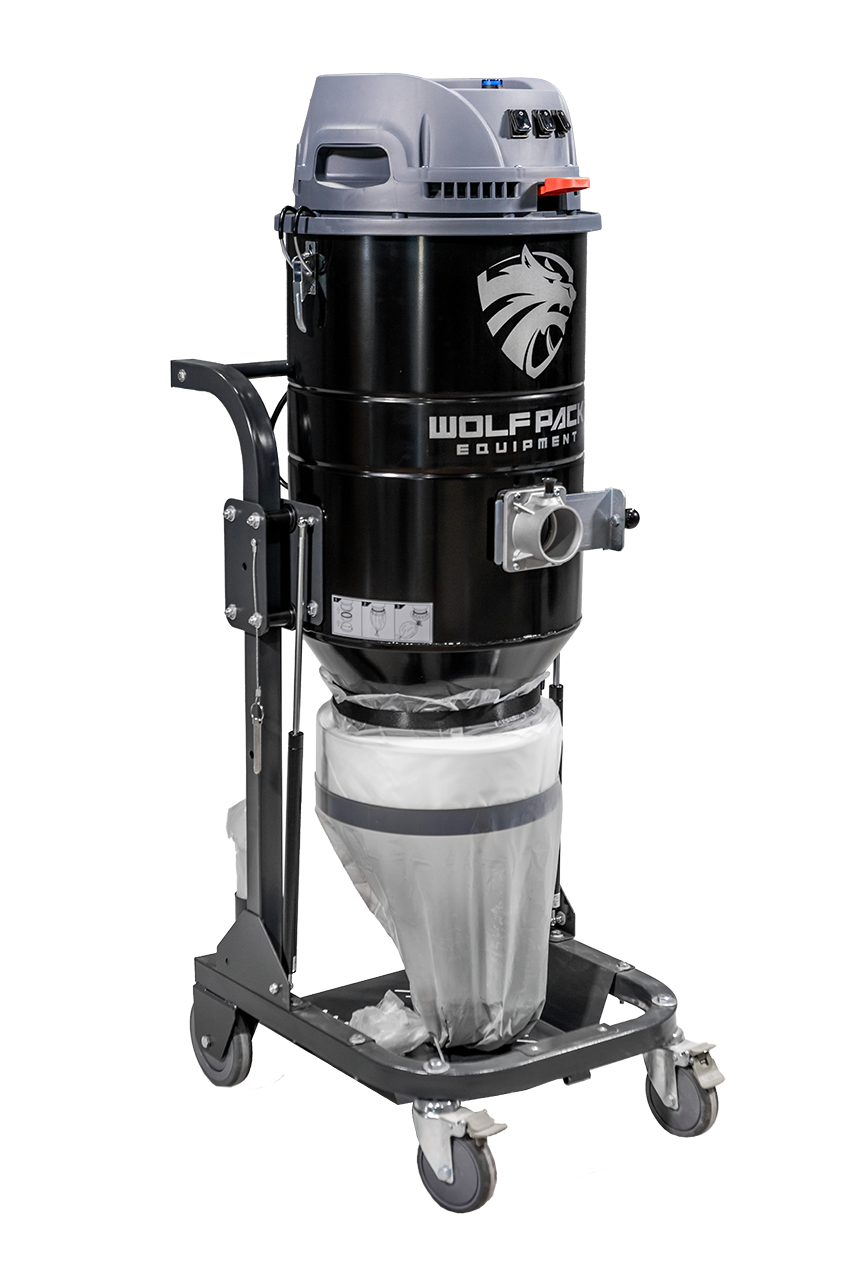 The WOLF VAC 3 is equipped with a manual lever that will clean the filter with a jet pulse. It includes floor cleaning tools and comes standard with a HEPA filter. There are no circuit boards, which provide simple operation settings and a collapsible frame for easy transport.